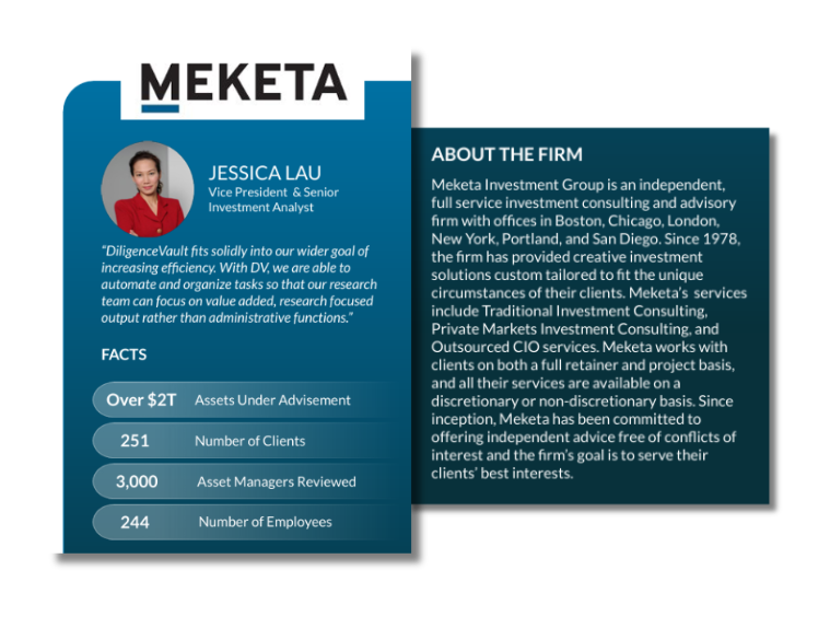 Download the case study below to learn the details of this partnership – why Meketa chose DiligenceVault, how DV’s module helped transform their process, and what are the key benefits that the firm has derived from this partnership.