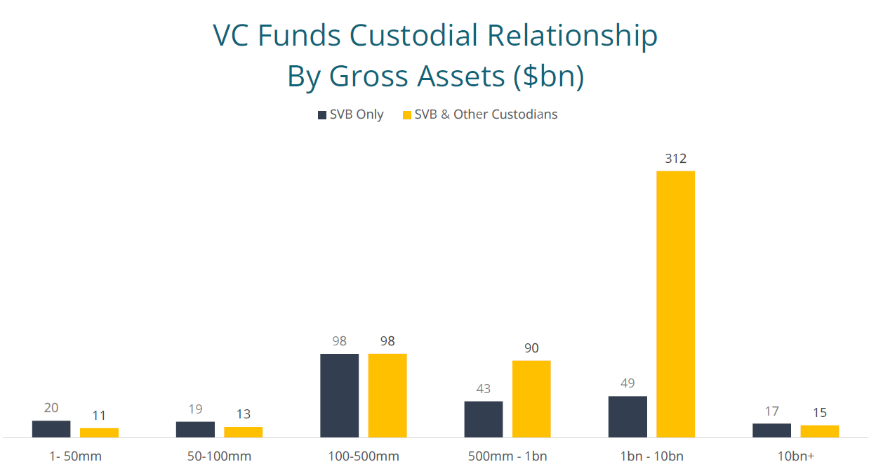 Through DV’s Form ADV monitoring, investors are able to monitor, search and track service provider exposure and trends across firms and funds. We spent some time analyzing these rich data sets, specifically SVB, and have included a few exhibits below as reference.