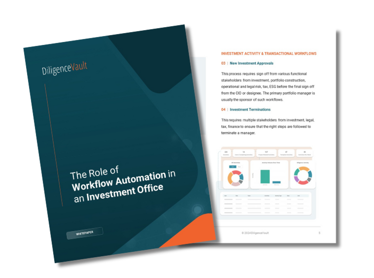 We discuss how our clients use DiligenceVault’s technology to automate various workflows, bring collaboration capabilities, and ensure visibility and transparency throughout the investment office. In this whitepaper, we discuss ten use cases grouped in three specific workflow families:
