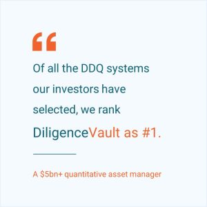 To truly understand DiligenceVault’s competition, let’s quickly go back a few years. Since 2014, DiligenceVault (DV) has been building a network ecosystem to provide value to our clients and their due diligence processes. DiligenceVault’s platform, with over 50,000 global users today, helps digitize, centralize and streamline the due diligence and data exchange framework for asset owners and asset managers.
